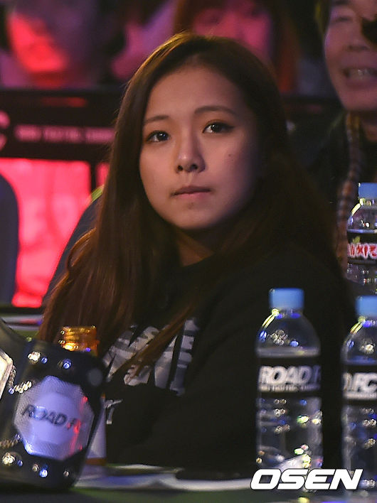 송가연이 1일 오후 서울 장충체육관에서 열린 '로드FC 021& 영건즈 20' 경기를 관전하고 있다.