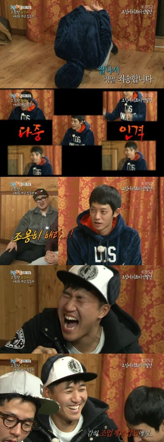‘1박2일’ 정준영이 우승을 하고서도 비굴한 모습으로 웃음을 안겼다.