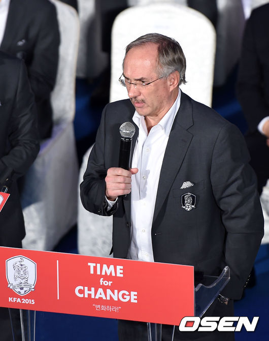 슈틸리케 감독이 팬들에게 인사말을 하고 있다.