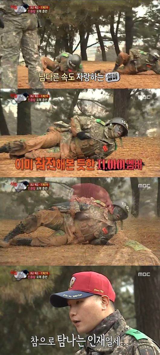 이날 각개전투 훈련에 돌입한 멤버들은 포복 훈련을 했다. 다른 멤버들은 제대로 전진하지 못하며 고군분투 했지만, 엠버는 거침 없이 전진했다. 목소리 역시 우렁차 소대장의 눈을 단번에 사로잡았다.