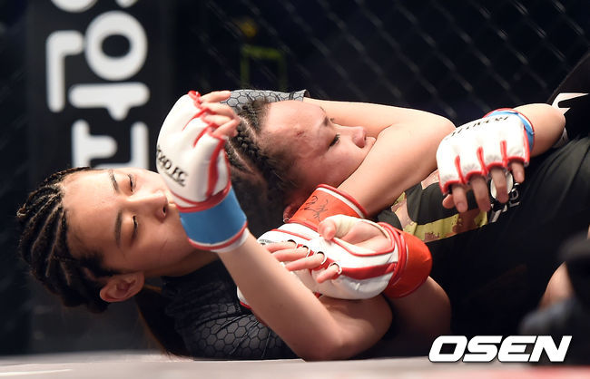 이리에 미유는 반격을 시도했지만 자세가 여의치 않았다. 이리에 미유는 잔뜩 자세를 웅크리고 버티기에 나섰다. 그러자 박지혜는 이리메 미유를 붙잡고 니킥까지 가해 계속 주도권을 놓지 않았다. 박지혜는 왼손으로 상대 몸통을 붙잡고 오른손으로 계속 안면에 펀치를 날렸다. 박지혜가 압도적 우세를 보이며 1라운드가 끝났다.