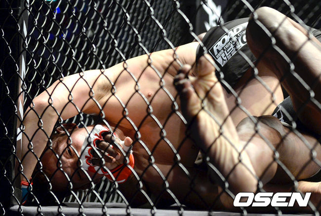 홍영기가 타이런 핸더슨에게 기무라 록(팔 비틀어 꺾기)을 당하고 있다. /youngrae@osen.co.kr
