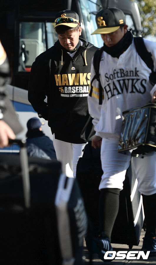 1일 오후 일본 미야자키(宮崎) 이키메노모리 운동공원 내 아이비스타디움에서 진행된 일본 프로야구 소프트뱅크 스프링캠프,마쓰자카가 경기장에 들어서고 있다.