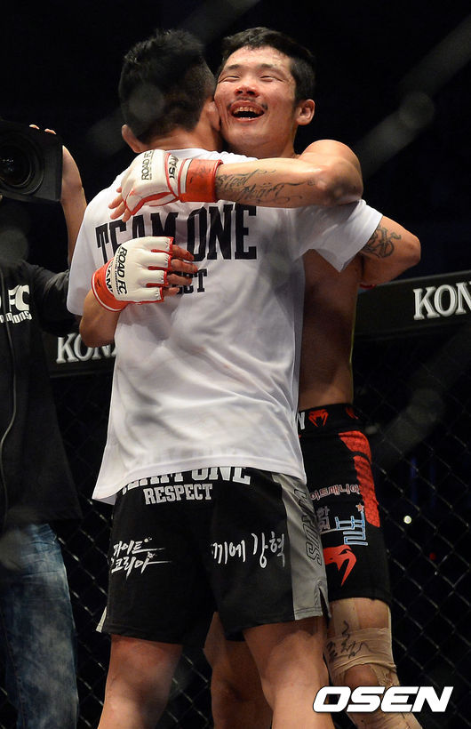 서두원은 ‘넬라 판타지아’ 음악에 맞춰 담담하게 입장했다. 자신에게 ‘감성 파이터’라는 별명을 안겨준 ‘남자의 자격, 합창편’에서 화제가 된 음악이었다. 이에 맞선 최무겸은 당당하게 챔피언벨트를 어깨에 걸머지고 등장했다. 황금색으로 빛나는 챔피언벨트 외에 별다른 말이 필요 없었다.