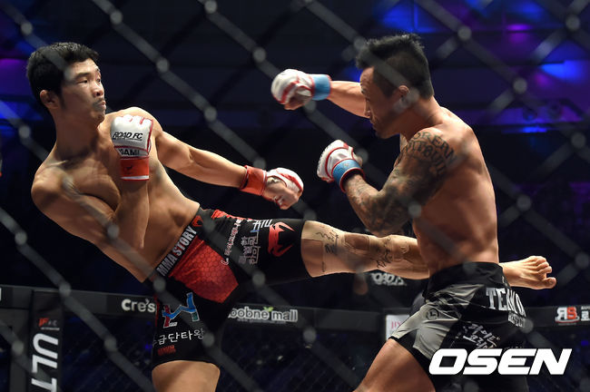 ‘챔피언’ 최무겸(26, MMA 스토리)은 1일 오후 서울 장충체육관에서 개최된 종합격투기 ‘굽네치킨 ROAD FC 021’ 메인이벤트 65.5kg급 페더급 타이틀매치에서 도전자 ‘도전자’ 서두원을 연장라운드까지 가는 접전 끝에 심판 2-1 판정승으로 누르고 2차 방어에 성공했다. 최무겸은 전적 6승 3패를 이어가게 됐다. 패한 서두원은 통산 8패(10승)를 당했다.