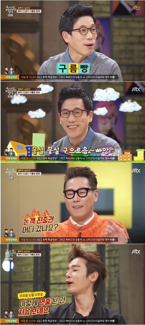 이날 진 교수는 “비슷한 이야기들이 약간 변주되면서 반복되는데, 그 리드미컬한 반복을 멍하게 보게 되는 것”이라며 ‘구름빵’의 중독성을 설명했다. 그러자 지상렬은 “그 리듬을 좋아하는 걸 보니까 부정맥이 있나 보다”라고 엉뚱한 진단을 내렸다.