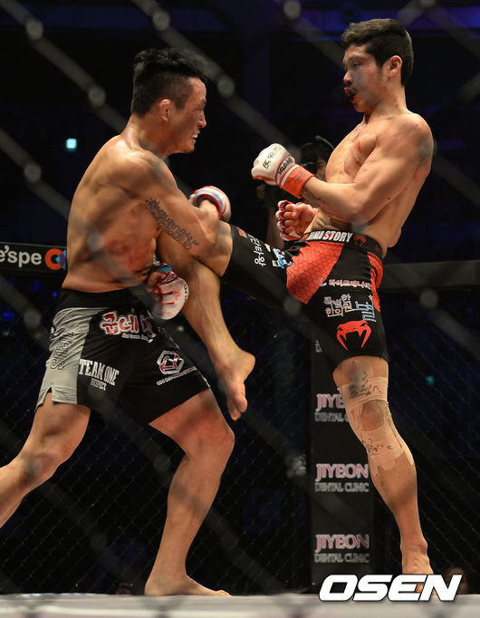 ‘챔피언’ 최무겸(26, MMA 스토리)은 1일 오후 서울 장충체육관에서 개최된 종합격투기 ‘굽네치킨 ROAD FC 021’ 메인이벤트 65.5kg급 페더급 타이틀매치에서 도전자 ‘도전자’ 서두원을 연장라운드까지 가는 접전 끝에 심판 2-1 판정승으로 누르고 2차 방어에 성공했다. 최무겸은 전적 6승 3패를 이어가게 됐다. 패한 서두원은 통산 8패(10승)를 당했다.