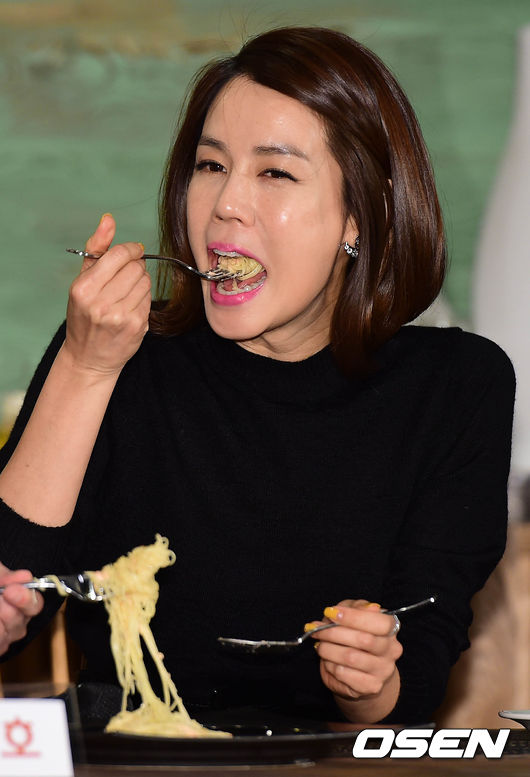 2일 오후 서울 가양동 CJ E&M 스튜디오에서 열린 올리브TV '올리브쇼 2015' 오픈 스튜디오 행사에서 김지호가 최현석 셰프가 만든 파스타를 맛보고 있다.