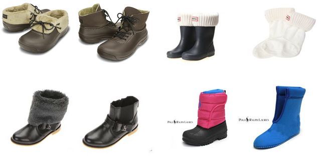 크록스 블리첸 컨버터블, 헌터부츠, 헤지스키즈 부츠, 폴로 부츠.