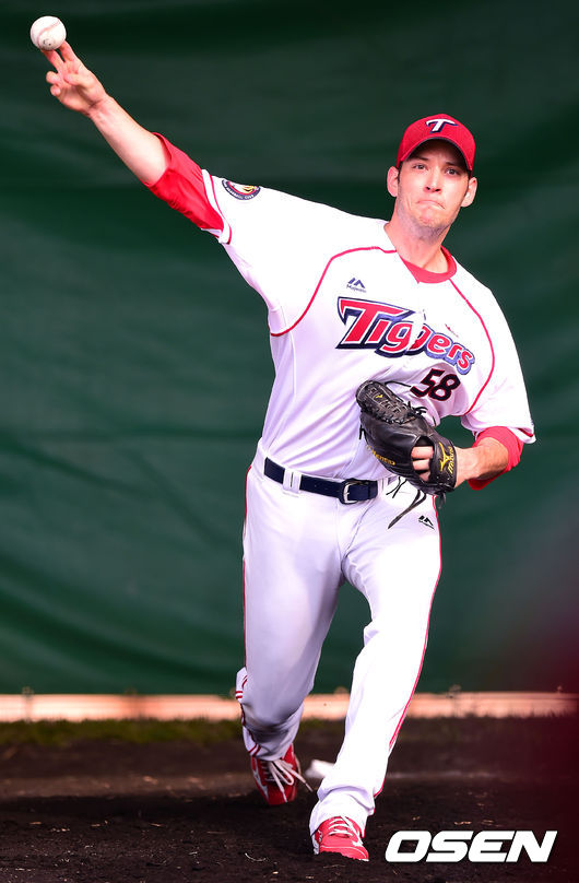 KIA 새 외국인투수 조쉬 스틴슨이 불펜 피칭을 하고 있다.
