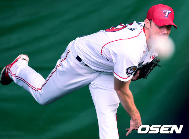 KIA의 새로운 외국인투수 필립 험버가 불펜 피칭을 하고 있다.