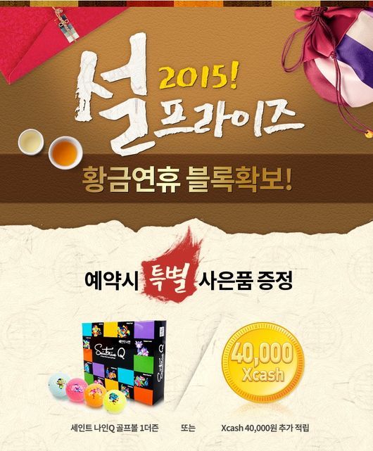엑스골프는 설 연휴인 오는 17일부터 21일 사이 이용할 수 있는 패키지 상품들로 해당 기간 내 예약 시 신청자 1인에게 세인트나인Q 골프공 1더즌(12알) 또는 엑스캐시(Xcash) 4만 원 적립 중 원하는 혜택을 제공한다. 혜택을 받을 수 있는 골프장은 지역별로 지정되어 있으니 확인 후 이용하면 된다.