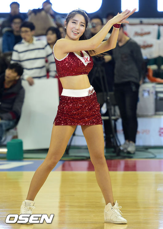 경기에 앞서 치어리더들이 힘찬 응원을 펼치고 있다.