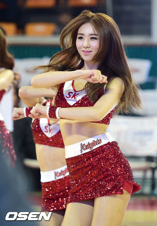 경기에 앞서 치어리더들이 힘찬 응원을 펼치고 있다.