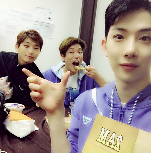 그룹 2AM 멤버 조권, 정진운, 이창민이 MBC ‘아이돌 스타 육상 양궁 선수권 대회’ 인증 사진을 찍었다.