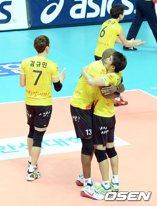경기 종료 후 OK저축은행 선수들이 승리의 기쁨을 나누고 있다. /sunday@osen.co.kr