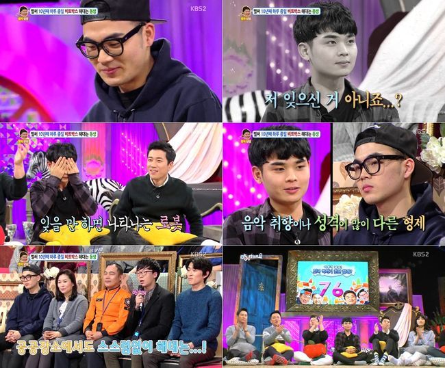 이 남성은 동생이 10년 동안 매일 집 안에서 비트박스를 하는 통에 노이로제에 걸릴 지경이라는 사연을 털어놨다. 이후 등장한 동생은 “예전에 살도 많이 쪘고 내성적인 성격이었다. 그런데 비트박스를 하면서 많이 변했다. 인생의 전환점이 됐다”고 말하며 비트박스를 지금까지 하게 된 이유를 설명했다.