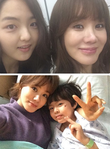 배우 엄정화가 영화 촬영 중 아역배우들과의 인증샷을 공개했다.