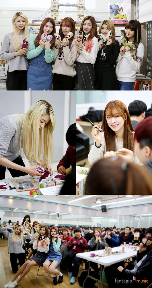 서울 역삼동 판타지오 트레이닝 센터에서 열린 이번 행사는 헬로비너스 멤버 1명과 초대된 팬 10명이 여섯 개의 조를 이뤄 총 3시간에 걸쳐 진행됐다. 아기신발을 만드는 일 외에도 멤버들과 팬들이 이심전심 게임을 하며 호흡을