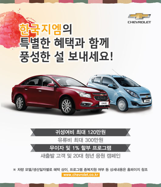 한국지엠주식회사(이하 한국지엠)가 설을 맞아 2월 한달 간 '2015 해피 설날 페스티벌'을 시행, 다양한 구매 혜택을 제공한다.