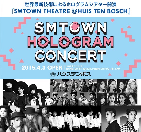 SM은 일본 나가사키현에 위치한 유명 테마파크 하우스텐보스 내 어트랙션 타운에 SM 아티스트들의 홀로그램 콘서트를 만날 수 있는 SM타운 씨어터 하우스텐보스(SMTOWN THEATRE @HUIS TEN BOSCH)를 오픈, 4월 3일부터 7월 5일까지 화려하고 생동감 넘치는 홀로그램의 세계를 선보인다.