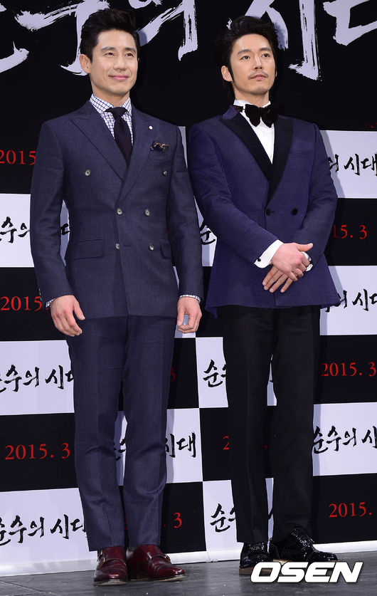 3일 오후 서울 강남구 CGV 압구정점에서 열린 영화 '순수의 시대' 제작보고회에서 배우 신하균, 장혁이 포토타임을 갖고 있다.
