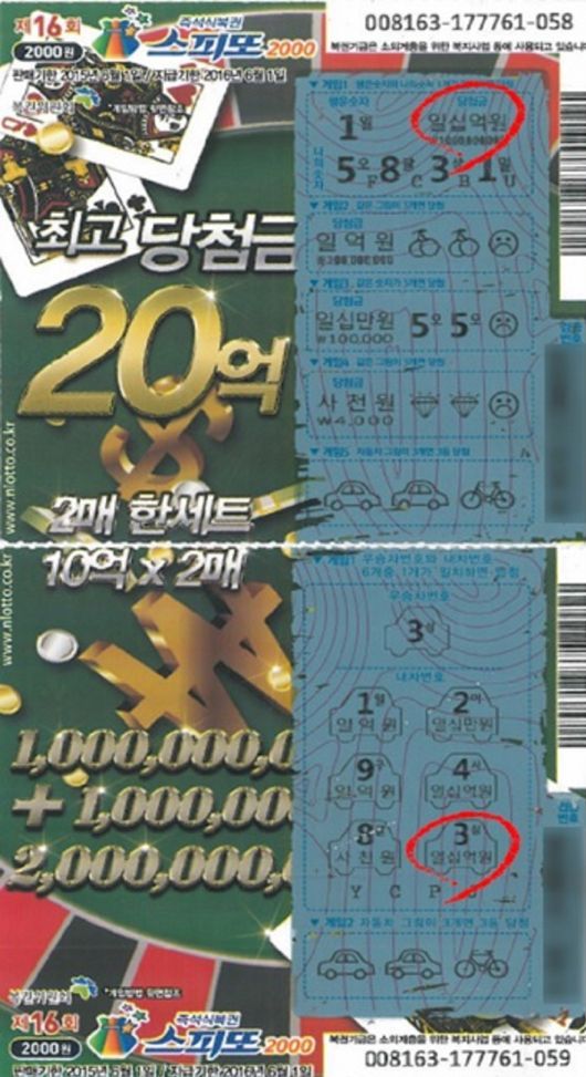 즉석복권 사상 최고 당첨금이 걸린 스피또2000에서 20억 1등을 거머쥔 행운의 당첨자가 나왔다. 아직 20억 당첨금이 걸린 1등 복권은 한 세트가 남아 있다.