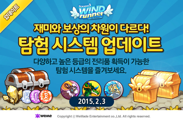 위메이드 엔터테인먼트는 러닝 어드벤처 모바일게임 ‘윈드러너’가 3일 새로운 ‘탐험 시스템’ 업데이트를 실시한다고 밝혔다.