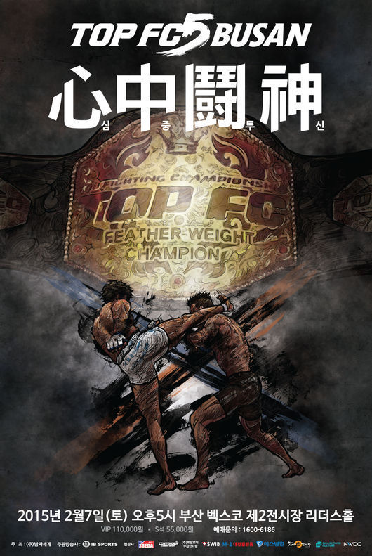 이로서 TOP FC5 심중투신은 오픈 경기 포함 15게임 전 대진이 최종 완성됐다. TOP FC5는 베테랑 파이터인 ‘크루세이더’ 최영광(노바MMA)과 페더급GP를 통해서 일약 ‘신데렐라맨’으로 등극한 조성원(팀MAD)이 TOP FC 초대 페더급 챔피언 벨트를 놓고 격돌하며, ‘주먹대통령’ 김도형의 복귀전, ‘무서운 아이’ 김동규의 재기전 등 투신과 같은 선수들의 치열한 격전이 격투가의 고향 부산에서 펼쳐질 예정이다.