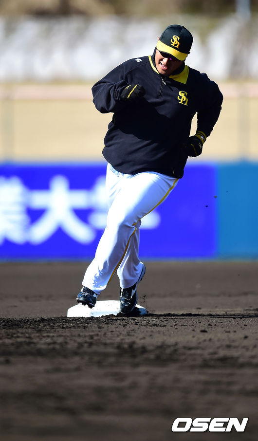 3일 오후 일본 미야자키(宮崎) 이키메노모리 운동공원 내 아이비스타디움에서 진행된 일본 프로야구 소프트뱅크 스프링캠프,이대호가 베이스러닝훈련을 하고 있다.