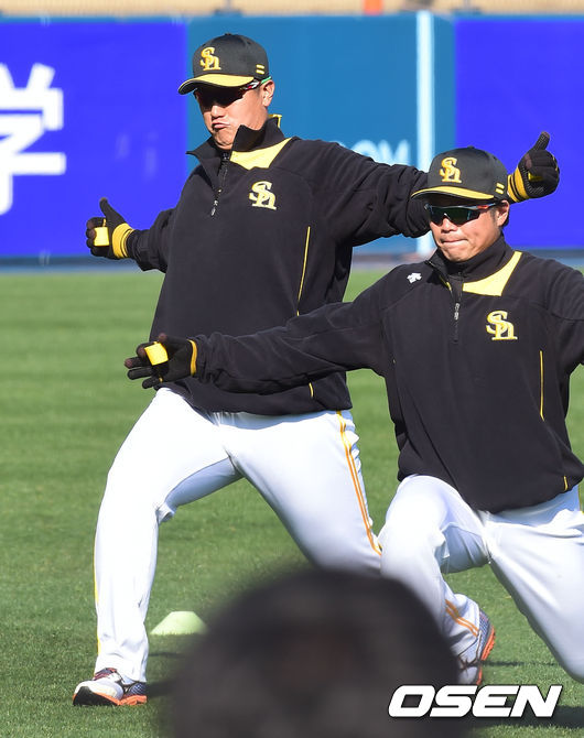 3일 오후 일본 미야자키(宮崎) 이키메노모리 운동공원 내 아이비스타디움에서 진행된 일본 프로야구 소프트뱅크 스프링캠프, 이대호가 스트레칭을 하고 있다