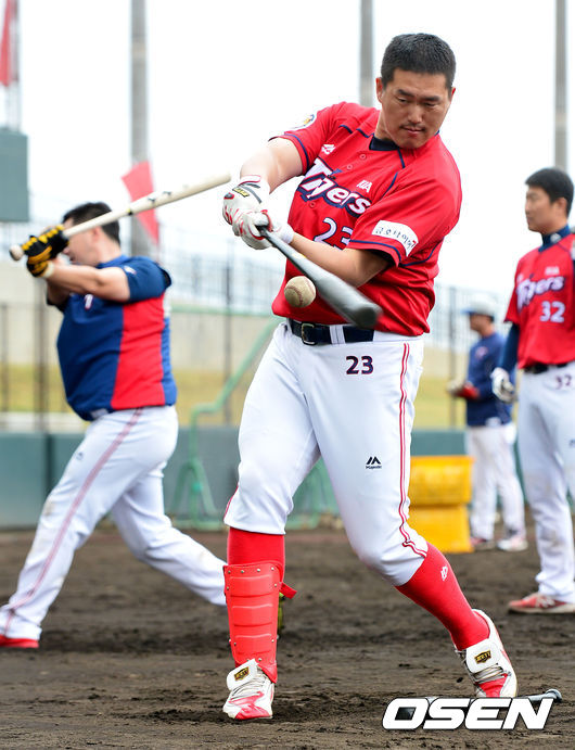 KIA 최희섭이 타격 훈련을 진행하고 있다.