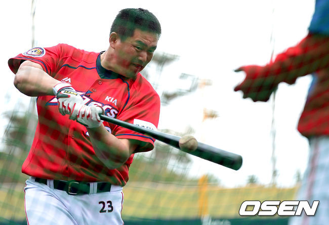 KIA 최희섭이 타격 훈련을 진행하고 있다.