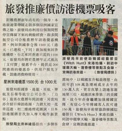 해당 매체는 ‘마녀사냥’ MC들의 동선을 체크하며 그들이 먹은 음식과 현지인들과 만나게 된 과정 등에 대해 상세히 기술해 지면에 크게 실었다. 네 명! MC들의 사진 역시 한 눈에 들어올 정도로 부각시켰다. 또한, 자국의 관광발전국에서 앞으로도 유명한 한국스타를 초청해 홍콩 관광산업의 활성화를 꾀할 예정이라며 기사를 마쳤다.