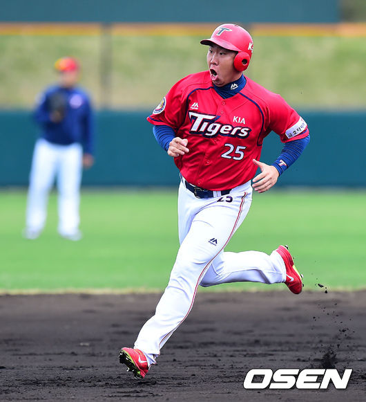KIA 이범호가 주루 훈련을 진행하고 있다.