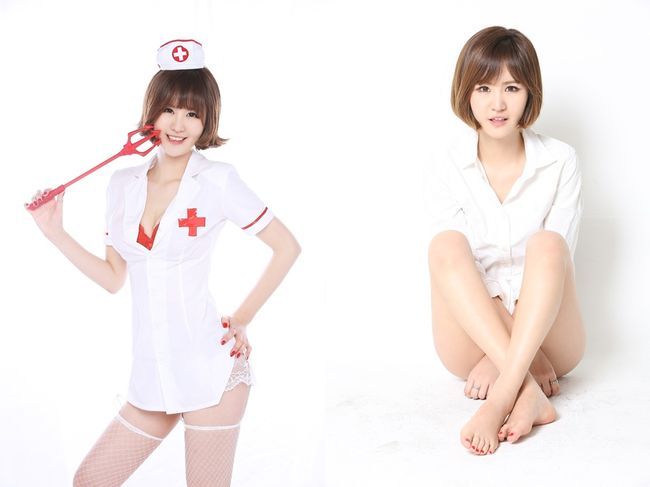 윤수현은 3일 소속사 솔미디어를 통해 간호사 의상을 연상하게 하는 옷을 입고 미소를 짓고 있다. 그는 바지는 아예 입지 않고 가슴 라인은 확 드러내는 파격적인 노출을 했다.