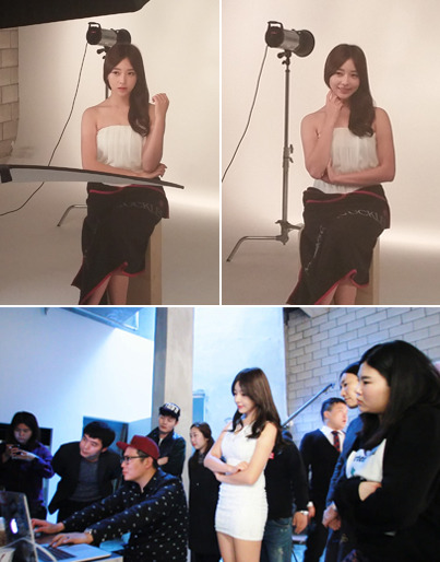 공개 된 사진 속에는 천이슬의 광고 촬영 현장 사진이 담겨져 있다. 천이슬은 순백색 짧은 드레스를 입고 S라인을 뽐내며 촬영에 열중하고 있다.