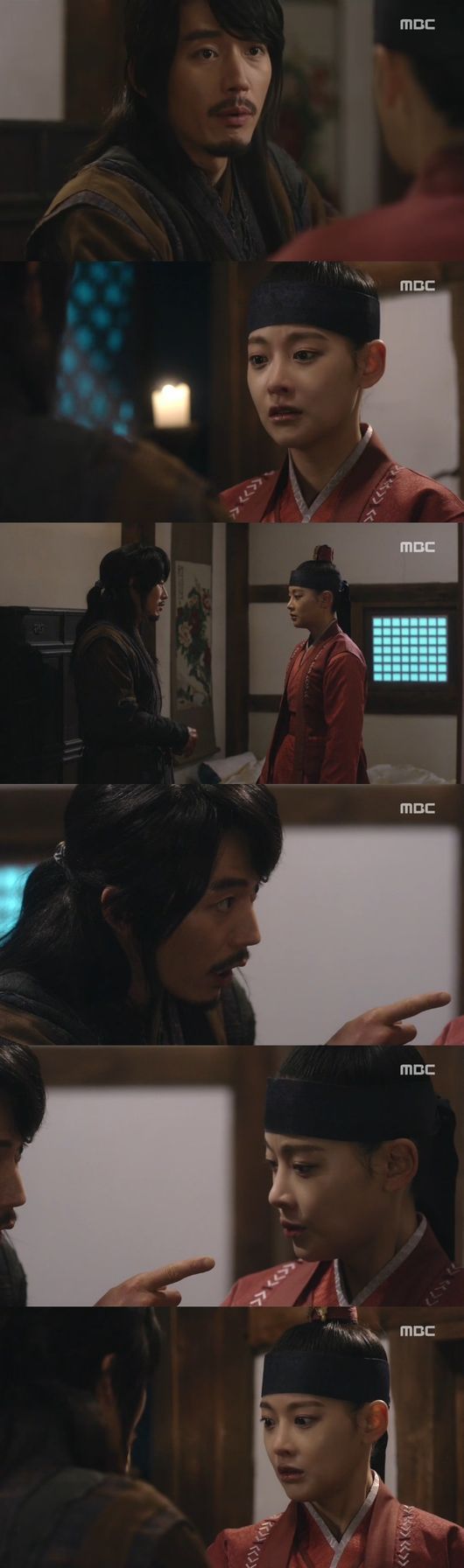 왕소는 신율에게 뱀눈사내(조재룡 분)와 칼싸움 하는 걸 들키고는 칼연습을 한 거라고 변명했다.
