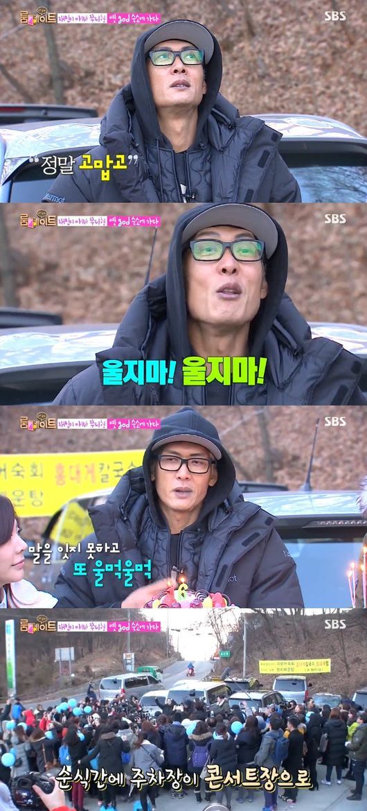 박준형은 3일 방송된 SBS 예능프로그램 ‘룸메이트’에서 자신의 SNS를 통해 옛 숙소에서 게릴라 모임을 제안했다. 주소도 적지 않은 채 옛 숙소라고 적었을 뿐인데 박준형을 보기 위해 팬들 100여명이 모였다.