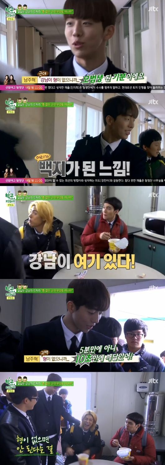 강남과 처음으로 다른 반이 된 남주혁은 "강남 형 없으니까 모범생 된 기분이다. 백지가 된 느낌이다. 머릿속이 복잡하다"고 털어놓았다.