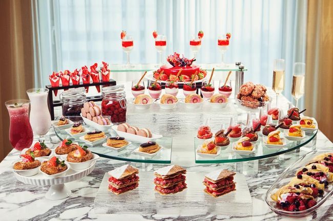새콤달콤한 생 딸기와 딸기 도넛 트리, 딸기 롤은 보는 것만으로도 달콤해 보인다. 특히 이번 시즌에는 '라이브 스트로베리 코너'가 마련되어 딸기 퐁듀와 크레페 및 와플 등을 파티시에가 직접 만들어 제공한다. 또한 생 딸기 주스 또는 스파클링 와인을 선택하여 함께 즐길 수 있어 더욱 풍부한 맛을 경험할 수 있다.
