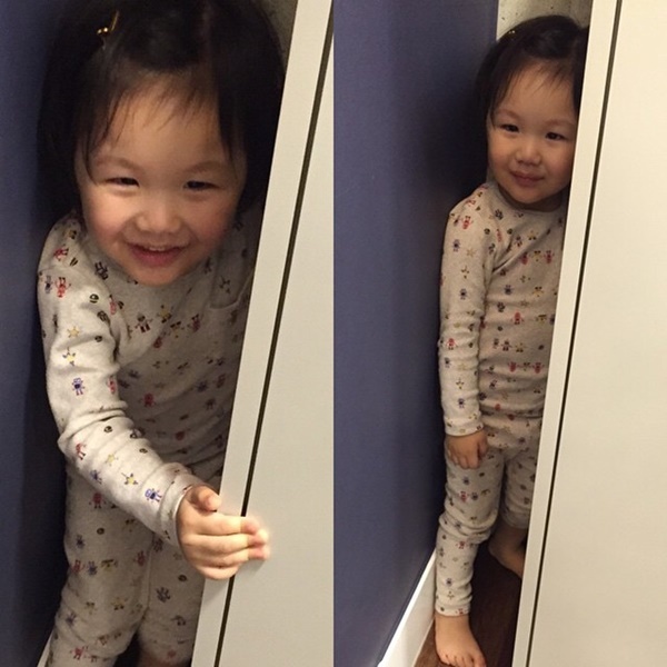 엄태웅 아내 윤혜진은 지난 3일 자신의 인스타그램에 딸 엄지온의 사진과 함께 “엄지온 안나와? 요즘 장 사이마다 찾아들어가 숨는 엄지온. 위험해~ 갇힌다”라는 글을 올렸다.