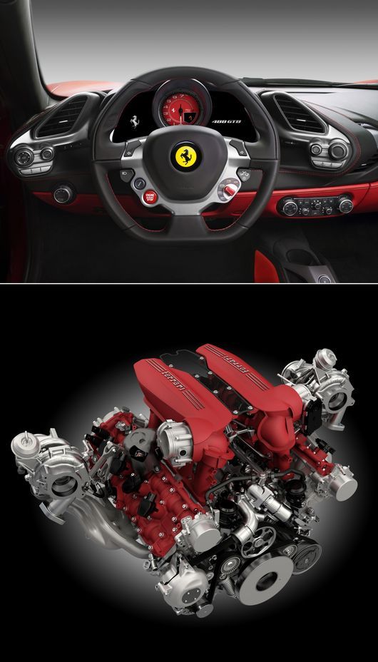 488GTB의 새로운 3902cc V8 터보 엔진은 동급 최고의 출력, 토크, 응답시간을 자랑한다. 8,000 rpm에서 670 마력을 뿜어 내며 최대 토크는77.5kg.m에 달하고, 2,000 rpm에서의 가속페달에 대한 반응시간은 0.8초에 불과하다. 또한 단 8.3초 만에 정지상태에서 200 km/h까지 도달(제로백 3.0초)하며 성능에 관련한 모든 요소들의 혁신을 통해 피오라노 트랙을 단 1분 23초의 랩 타임에 주파하는 기록을 이뤄냈다.