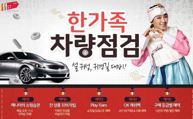 SK플래닛 11번가는 “설 명절을 앞두고 자동차 용품 60여 개를 총망라한 ‘한가족 차량점검’ 기획전을 오는 20일까지 진행한다”고 4일 밝혔다. 귀성길 장거리 운전을 대비해 자동차 안전용품과 편의용품을 최대 60% 할인해 판매한다.