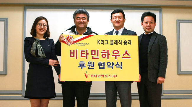 비타민하우스 용승재 의장은 “2부리그에서 어려움에 처해있던 구단을 돕기 위해 후원에 나섰는데 함께 승격할 수 있어 정말 뜻 깊은 한해였다”며 “광주 시민들의 자부심이 된 광주FC가 더욱 발전해 지역의 위상을 높여 줄 수 있기를 기대한다”고 밝혔다.