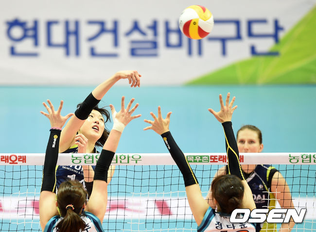 4일 오후 경기 수원실내체육관에서 '2014-2015 NH농협 V-리그' 여자부 현대건설과 GS칼텍스의 경기가 열렸다.