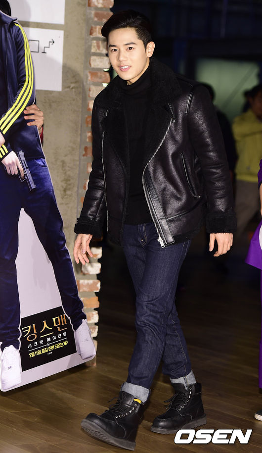 4일 오후 서울 강남구 메가박스 코엑스점에서 열린 영화 '킹스맨:시크릿 에이전트' VIP 시사회에서 제국의아이들 동준이 입장하고 있다.