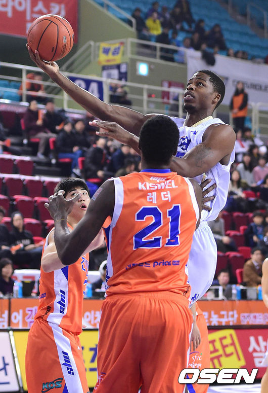 4일 오후 인천 삼산실내체육관에서 열린 '2014-2015 KCC 프로농구' 인천 전자랜드와 전주 KCC의 경기 2쿼터 심스가 슛을 시도하고 있다.