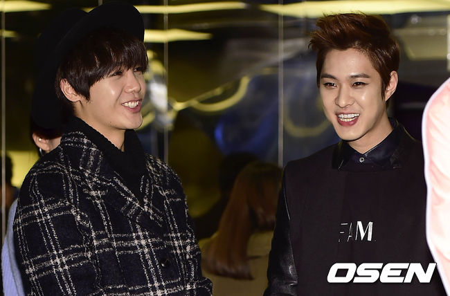 4일 오후 서울 강남구 메가박스 코엑스점에서 열린 영화 '킹스맨:시크릿 에이전트' VIP 시사회에서 엠블랙 미르, 승호가 포토타임을 갖고 있다.