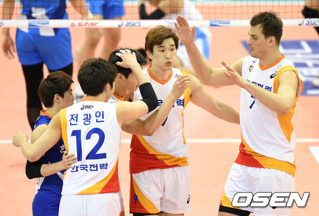 4일 오후 경기 수원실내체육관에서 '2014-2015 NH농협 V-리그' 한국전력과 우리카드의 경기가 열렸다.